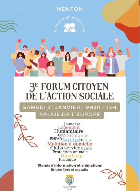 Mentone conferma la propria vocazione solidale e inclusiva ospitando la terza edizione del Forum Citoyen de l’Action Sociale, in programma sabato 31 gennaio dalle 9.30 alle 13.00 nella prestigiosa cornice del Palais de l’Europe. L’evento, a ingresso libero e gratuito, si rivolge a tutta la cittadinanza e si propone come uno spazio aperto di ascolto, confronto e supporto concreto.